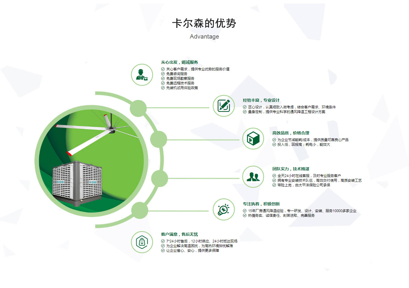 ??晉江市卡爾森機電設備有限公司是一家集設計、制作、銷售、安裝工業通風設備、中央空調、節(jié)能環(huán)保空調、脈沖除塵設備、環(huán)境凈化工程、等環(huán)保工程企業。并提供環(huán)境影響評價、環(huán)保工程總承包、環(huán)保工程設計、環(huán)保工程運營、環(huán)保工程成套設備等一站式服務。公司一直誠心服務于工業廠房的通風設施,我們的產品:“品種齊全、質量優(yōu)越”。根據客戶的需求精心設計,高質量的制造,力求使每個產品都達到合理耐用、節(jié)能環(huán)保。科學的設計和精美高品質的產品,完善的服務系統,加強售前、售中、售后服務,對顧客在使用商品中出現的各種問題及時解決,使顧客無后顧之憂。產品廣泛適用于各類型制造業、機械類、五金冶煉、食品、化工、電子、紡織、噴涂、娛樂以及服務等場所。我們秉承“質理過關、價格合理、交期準時、服務周到”而受到新老客戶的好評和信賴。我們堅持“客戶至上、質量上乘”為宗旨,努力工作,為您換來潔凈美好的明天。卡爾森愿以過硬的質量,良好的信譽同各界朋友一起開創(chuàng)更加輝煌的未來。